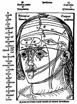 Graphik: MAGNUS HUNT, 1501, Lokalisation der Gehirnfunktionen